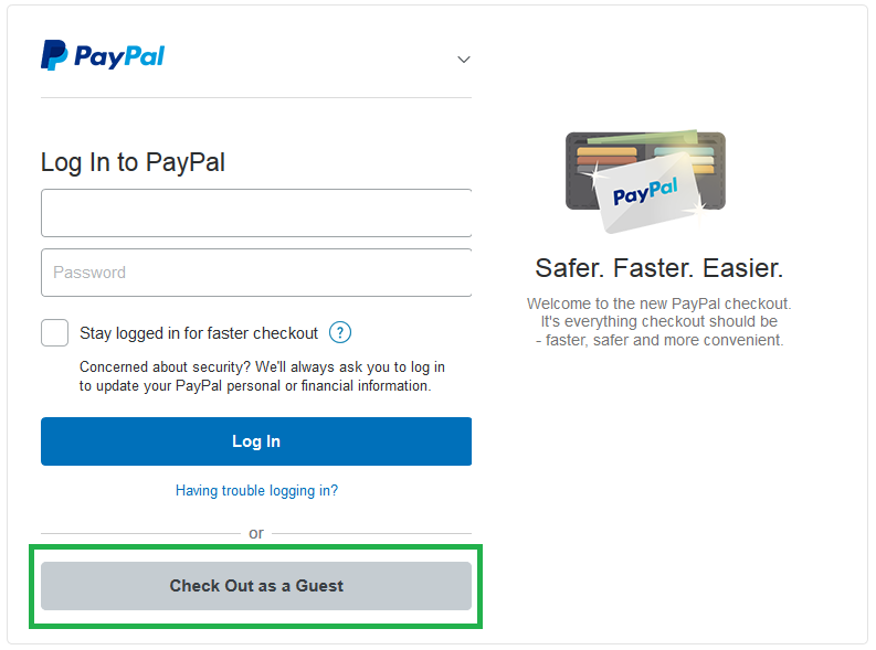 2- Once you "Confirm your Order" you are redirected to Paypal com make the payment, select "Check Out as a Guest"